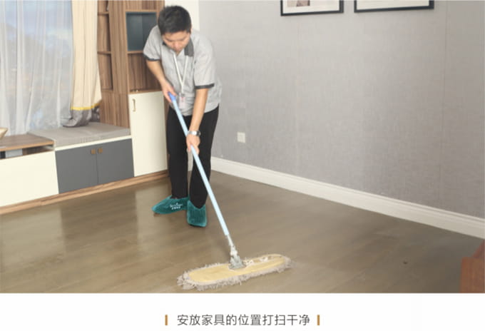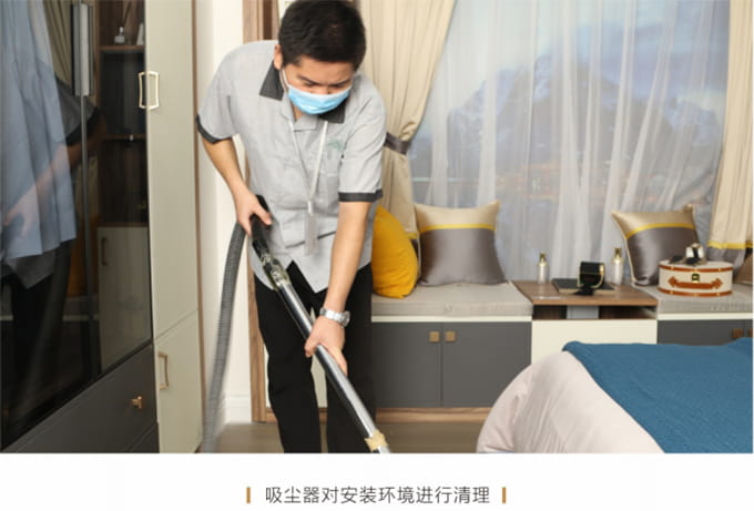 產(chǎn)品安裝確認無誤后及時清理房間內因安裝產(chǎn)生的垃圾并保持空氣流暢,然后用干凈的抹布將家具擦拭一遍,確保產(chǎn)品清潔,用吸塵器對安裝環(huán)境進行清理,并對所有安裝好的產(chǎn)品拍攝記錄作為完工效果備案。