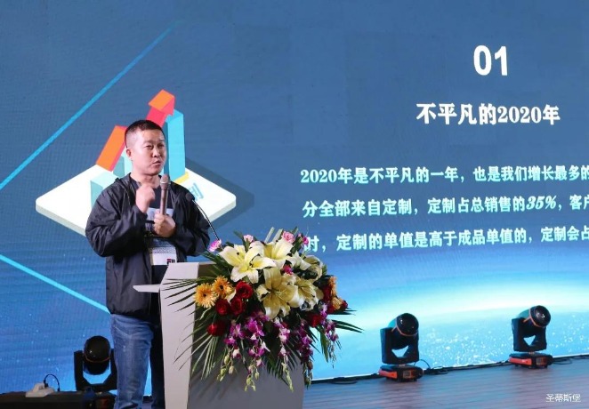 華燈璀璨的開場(chǎng)儀式,點(diǎn)燃了現(xiàn)場(chǎng)如火如荼的氣氛。K8凱發(fā)集團(tuán)營銷總經(jīng)理陳玉偉先生對(duì)晚會(huì)進(jìn)行了主題發(fā)言,他對(duì)2020年的營銷工作進(jìn)行了總結(jié),并著重從營銷工作部署、重點(diǎn)項(xiàng)目開展、產(chǎn)品整合、拎包幫扶、渠道運(yùn)營和移動(dòng)+定制整裝優(yōu)勢(shì)等方面對(duì)2021年的營銷工作做了全面的統(tǒng)籌規(guī)劃。同時(shí),他還講解了“美國夢(mèng)凱莎床墊”新品的產(chǎn)品工藝、市場(chǎng)優(yōu)勢(shì)、產(chǎn)品定位,使經(jīng)銷商對(duì)我們的新產(chǎn)品擁有更深入的認(rèn)識(shí)和了解。