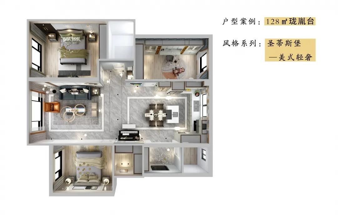 客廳延續(xù)著美式輕奢的氣韻,背景墻被簡(jiǎn)約有序的金屬線條分割,營(yíng)造出質(zhì)感空間的細(xì)膩。沙發(fā)沉穩(wěn)又不失時(shí)尚,色彩混搭更是讓人耳目一新,展現(xiàn)著美式風(fēng)格天性自由不羈的浪漫個(gè)性。