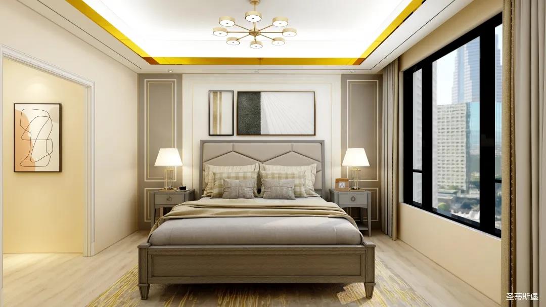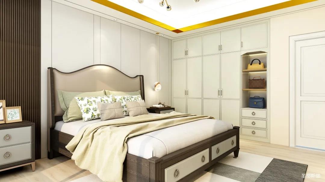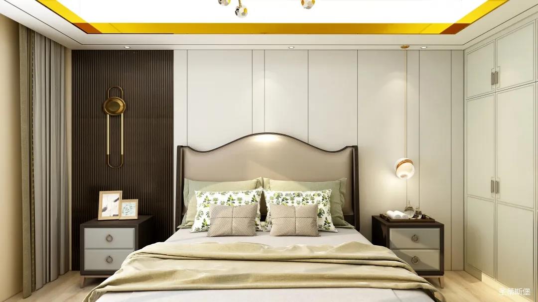 整個(gè)空間將對(duì)稱美進(jìn)行到底,雖在設(shè)計(jì)思想上有所保留,但呈現(xiàn)的卻是一個(gè)擁有秩序感的家,高級(jí)的莫蘭迪灰與溫柔的象牙白居中搭配,優(yōu)雅又治愈,能在睡眠上帶來(lái)安穩(wěn)與舒適的張力。