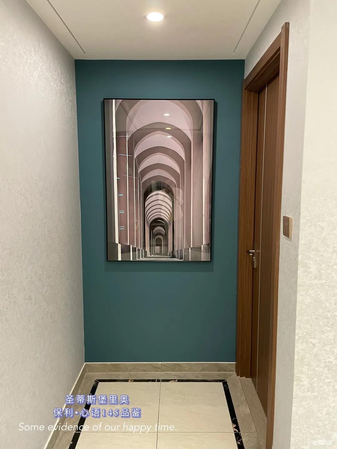 ▲進(jìn)門有個(gè)小過渡“玄關(guān)”,幾步就可到客餐廳中心區(qū),由于玄關(guān)空間較小。所以以一幅抽象畫直接營(yíng)造入戶氛圍!