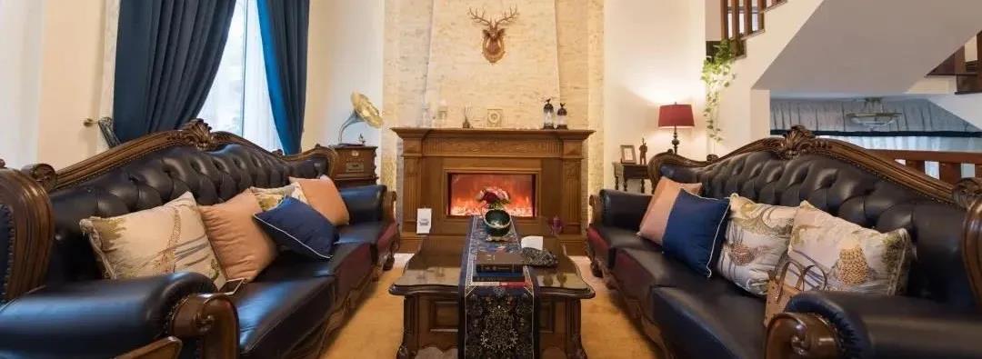 ▲客廳以灰色為主調(diào),電視背景墻采用拼接大理石搭配實(shí)木闌珊,與對(duì)立墻面形成撞色處理,既可以加深空間層次感,也提升了空間明亮度。一字型真皮沙發(fā)與實(shí)木電視柜中和了大空間的空曠,打造出一個(gè)談心敘話的和諧空間。