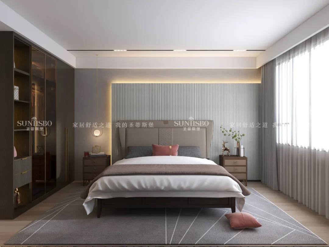 優(yōu)雅的米白色調(diào),沉穩(wěn)中帶有溫柔清新的自然感,以探尋最舒適的視覺體驗(yàn)為出發(fā)點(diǎn),將色彩深淺融合,以達(dá)空間平衡。空間線條疏密有序,平行延續(xù)出流暢輕巧的線性方程,以流動(dòng)的姿態(tài),達(dá)到簡約且堅(jiān)固的空間效果。