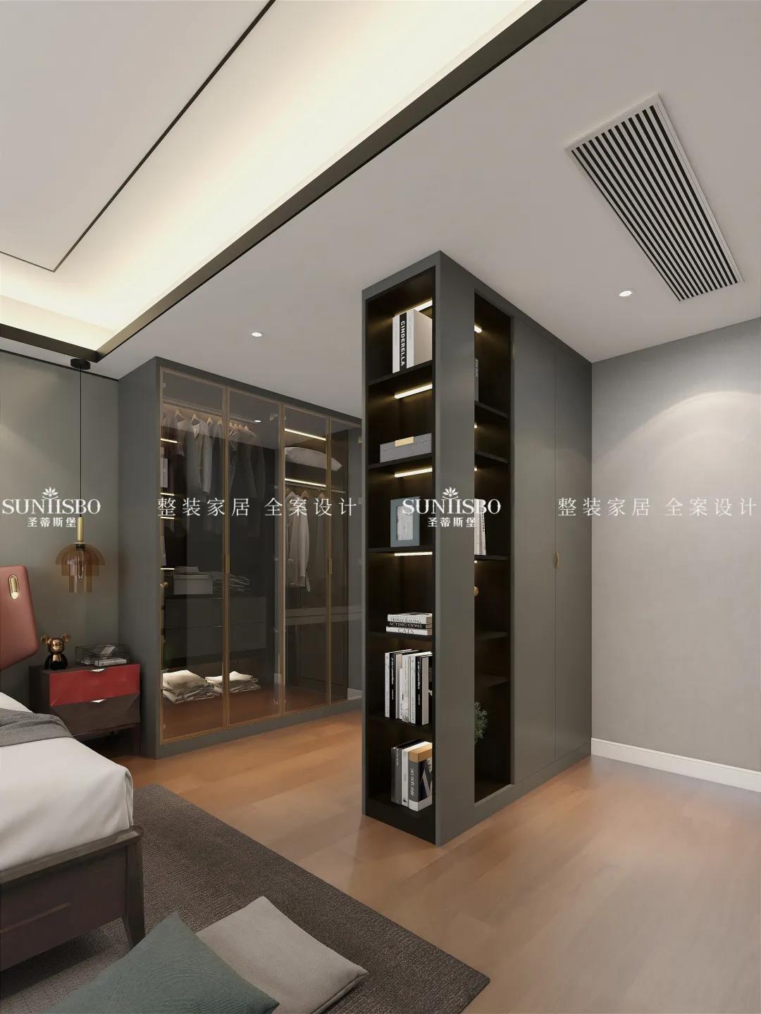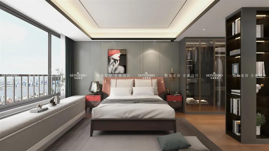 主臥的床是意式輕奢時(shí)尚與東方雅韻極致融合,沒有半點(diǎn)突兀和乖張。,意大利最出名的便是它的工藝與設(shè)計(jì),時(shí)尚的莫蘭迪色系、輕奢金屬的運(yùn)用,體現(xiàn)嫻熟的意式家具設(shè)計(jì)底蘊(yùn),兩者之間融合的相得益彰。