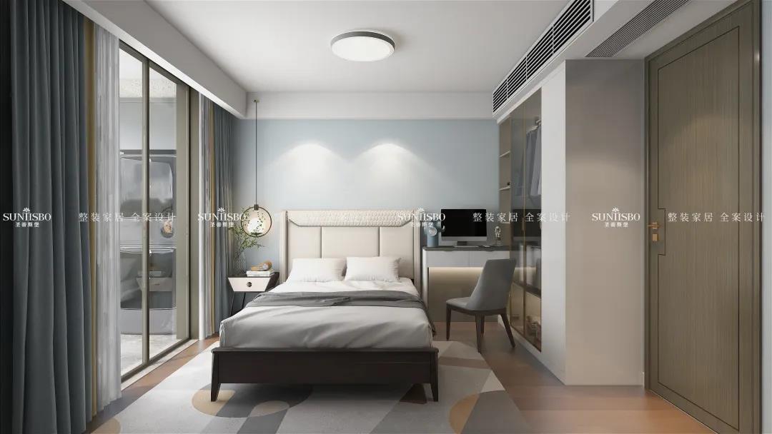 次臥是業(yè)主給爸爸媽媽預(yù)留的老人房,整體感覺都是比較沉穩(wěn)的,配色方面也是容易助眠的顏色,真的是非常貼心啦~